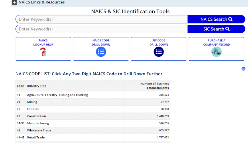 שלב 1 - חיפוש עומק - מציאת קודי ה-SIC ו-NAICS