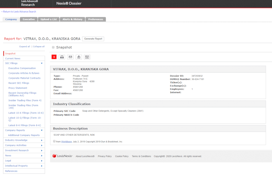 מצאנו שבסלובניה פועלים 14 עסקים זעירים (עד 10 עובדים) בתחום ייצור הסבונים והדטרגנטים. נשווה את הנתונים האלו למידע שאספנו במחקר הגלוי (חקירה בסושיאלז, בגוגל וכדומה), וננסה להבין מי השחקנים הגלויים לעומת הסמויים, אם כולם גלויים (או כולם סמויים), איפה הם מתחבאים, כיצד הם משווקים, מה הם מייצרים ומוכרים, באילו טווחי מחירים, באיזה טכניקות ייצור וכדומה.