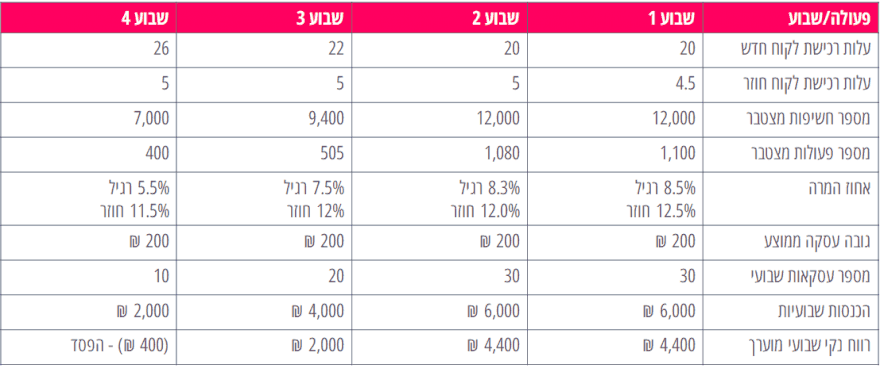 - ירידה חדה באחוז ההמרה ללקוחות חדשים. ירידה קטנה והתייצבות יחסית באחוז המרה ללקוחות חוזרים.