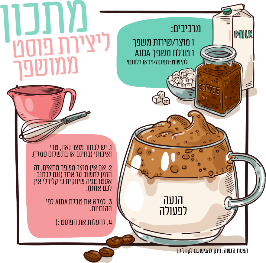 פוסט AIDA צריך לכלול בתוכו התייחסות לכל אחד מהשלבים של המשפך: