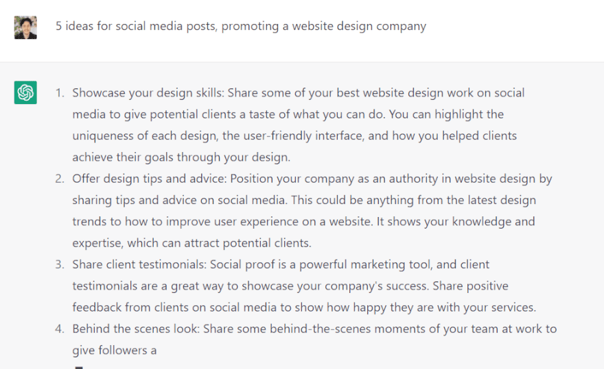 מנוע זה בנוי בממשק של צ'אט המדמה שיחה אנושית בשפה רגילה. אתם יכולים לשאול את הצ'אט שאלות, לבקש ממנו עצות והמלצות ואפילו לבקש ממנו לעשות בשבילכם את העבודה, כמו למשל לכתוב פוסט שיווקי לפייסבוק, לבנות חמישה דיוורים ברשימת תפוצה, לערוך ניתוח SWOT מעמיק לעסק שלכם, להציע רעיונות לפעילויות שיווק לקראת החגים - ועוד אלפי שימושים עסקיים ואישיים. אין כמעט גבול לאפשרויות שהמנוע הזה מציג בפנינו, וכמשווקים זה כלי מצויין שצפוי לשנות את כללי המשחק.