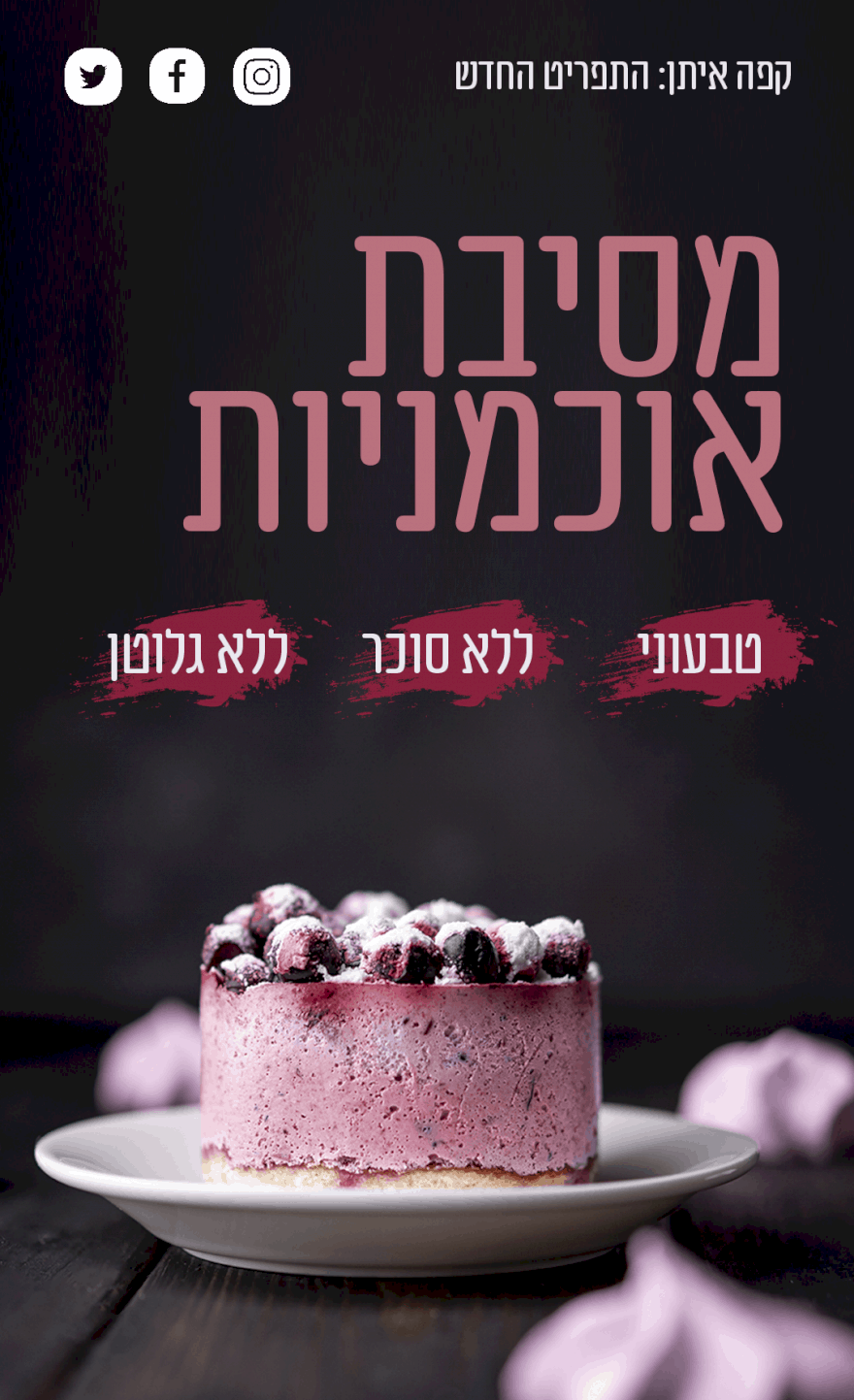 בתפריט החדש של "קפה איתן עד הבית" תמצאו את העוגה המושלמת לימי הקורונה המדכאים. כזו שאפשר לאכול בכיף ולהתפנק בכל כפית - בלי להעמיס סוכר, גלוטן או רגשות אשם מיותרים :) פצצה של טעמים וטקסטורות מינוס הג'אנק שכולנו מכניסים לסיסטם לאחרונה.