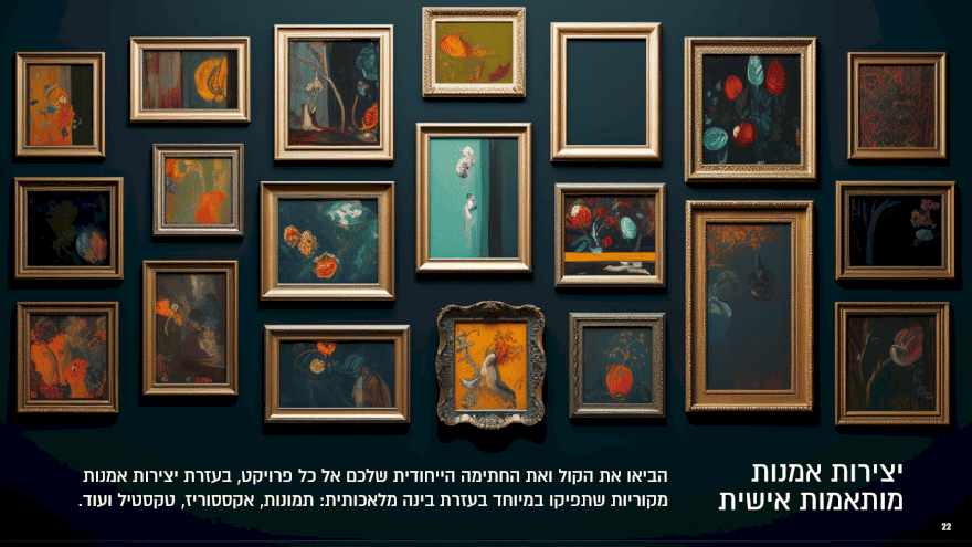 שיעורים יצירתיים ומהנים, שילמדו אתכם להפיק מכלי הבינה המלאכותית את המיטב, כמו יצירת פאלטות ייחודיות, שילובי צבעים הרמוניים, אמנות מקורית ועוד: