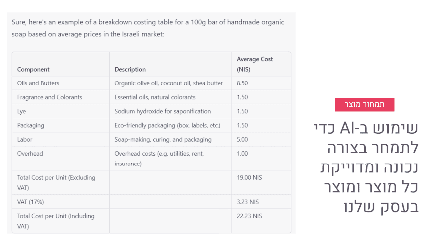 סדנה מוקלטת בת שלוש שעות, בה נלמד שימושים עסקיים מתקדמים בכלי הבינה המלאכותית ChatGPT (בגרסה החינמית או בתשלום). נכיר פונקציות מתקדמות כמו יצירת מסמכים, ניתוח תהליכים עסקיים, יצירת גרפים ותרשימים, בניית טבלאות שימושיות לכל פעילות בעסק, ואפילו פעולות עסקיות מתקדמות כמו תמחור נכון של המוצרים שלכם, גיבוש אסטרטגיית תוכן, בניית תוכנית עבודה עם משימות מדוייקות לכל יום ויום ועוד אינספור שימושים יצירתיים, חכמים ומועילים ביותר.