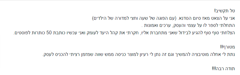 ועוד תרגילי תוכן רבים ומגוונים שיסגרו לכם פינה ויאפשרו לכם ליצור תוכן שיווקי איכותי לקידום העסק שלכם.