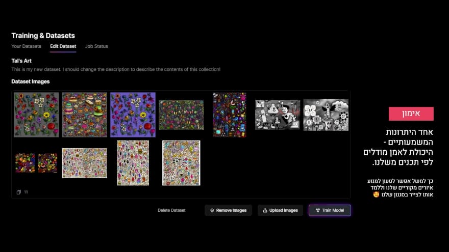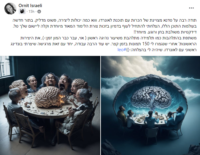 בעיניי, אחד הדברים המשמעותיים שלאונרדו מציע לנו (בניגוד למשל למידג'רני) הוא היכולת לאמן את המודל על בסיס היצירות שלנו. בסדנה נלמד כיצד לטעון עבודות, סקיצות וחומרים מקוריים שיצרנו, ולפתח מודל שייאפשר לנו לצייר דברים חדשים בעזרת הבינה המלאכותית: