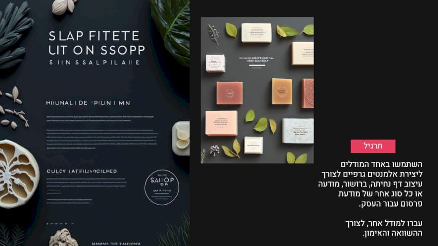 נלמד כיצד לערוך תמונות קיימות - לדוגמה, תמונות של המוצרים שלנו - להחליף רקעים, לשנות גדלים ולייצר הרבה מאוד חומרים לשיווק: