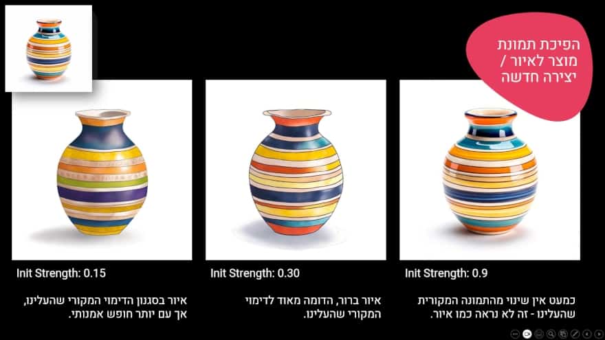 נלמד על הממשקים ועל הפונקציות השונות במערכת וכיצד ליצור פקודות מדוייקות שייאפשרו לצייר בדיוק את מה שעובר לנו בראש. בנוסף, נלמד כיצד להסיר רקעים מתמונות ואיך אפשר להשתמש בתמונה קיימת ולהפוך אותה למשהו שונה לגמרי (לדוגמה - לאיור, ציור, רישום ועוד):