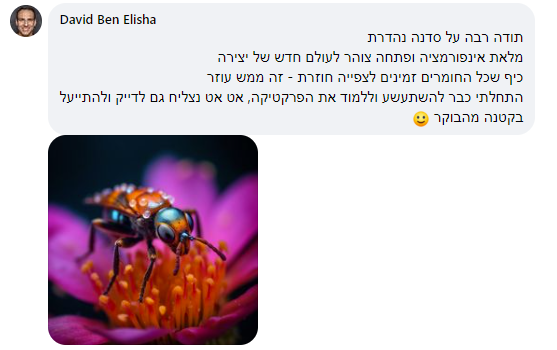 הקלטת הסדנה זמינה ללמידה עצמית ללא הגבלת זמן.