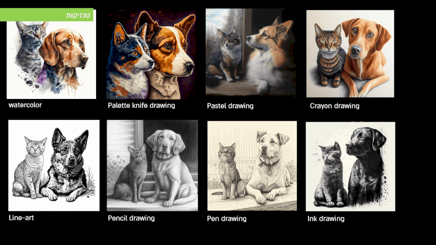 בסדנה נערוך היכרות עומק עם הפונקציונליות וספריית הכלים של המנועים הגרפים השונים, כולל קטלוג ענק של סגנונות, טכניקות, כלים, חומרים, גימורים ועוד: