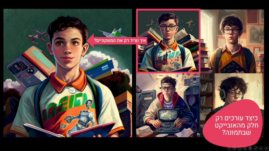 בואו להכיר ולקחת חלק במהפכה היצירתית שסוחפת את העולם, בסדנה מוקלטת, מתקדמת, מקצועית ומקיפה שבה נלמד איך למתוח את היכולות של מידג' ולהפיק את המיטב מתוך האפשרויות האינסופיות שנפתחו בפנינו פתאום.