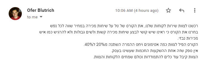 לא מאמינים שגם אתם יכולים למכור בכיף? פשוט קראו מה לקוחות שרכשו את הקורס מספרים.