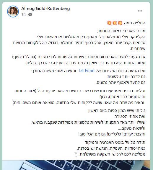 הנה שני משובים מתוך עשרות שתוכלו למצוא בדף הפייסבוק ובקהילה שלי, בנוגע לסדנת המכירות: