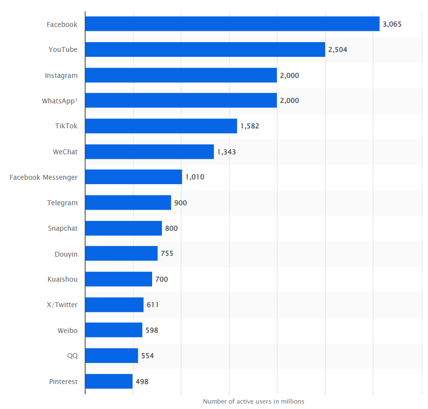 בסקר אחר, מאפריל 2024, היו לפייסבוק 3.065 מיליון משתמשים פעילים לפחות פעם בחודש. מהנתונים הרשמיים של מטא, רוב המשתמשים האלו עושים שימוש ברשת החברתית לפחות פעם בשבוע, חלקם הגדול באופן יומיומי, רבים מהם - יותר מפעם ביום.