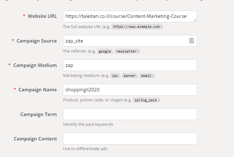 ראשית, כאשר אתם מקימים את המודעות בזאפ, כדאי לתייג את הקישורים שלכם (מקור, מדיום, שם) לצורך תיעוד ההמרות בגוגל אנליטיקס. אם זה נשמע לכם כמו סינית, קבלו החלטה זריזה אם בא לכם להיכנס לזה עכשיו או לא. המשמעות היא שתדעו מי קנה מה מזאפ ואיזה מסע הוא עשה בדרך לרכישה. זה מידע מעניין ומועיל שכדאי שיהיה לכם, אבל לא קריטי להצלחת הקמפיין הנוכחי.