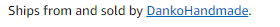 כאן ניתן לראות שבחנות DankoHandmade ההספקה מבוצעת ע"י המוכר: