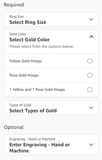 בחנות IlanAmirJewelry תוכלו לראות שלל אפשרויות קסטומיזציה המוצעות ללקוח, מסוגים שונים, שחלקן בגדר חובה לשם ביצוע הרכישה ואחרות אופציונאליות: