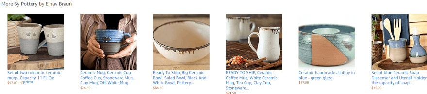שורה של מוצרים נוספים מהחנות, הנבחרים ומוצגים אוטומטית (הדוגמא מובאת מהחנות Pottery by Einav Braun):